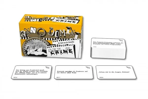 Bei Anno Domini müssen Ereignisse in die richtige zeitliche Abfolge gebracht werden. Es kommt dabei jedoch nicht auf exaktes Wissen an. Denn wer weiß schon, ob „ein Zauberer erstmals eine Frau auf der Bühne zersägt hat“ bevor oder nachdem der Satz „Schau mir in die Augen, Kleines!“ berühmt wurde. Wer gut bluffen kann hat beste Chancen seine Karten als Erster loszuwerden und damit zu gewinnen. Die richtige Mischung aus bekannten und kuriosen Ereignissen garantiert jede Menge Spaß für die ganze Familie.