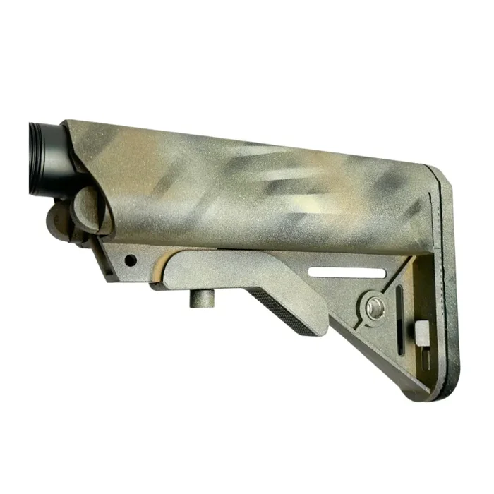 Wir stellen den „HK Jungle Predator“ vor – einen maßgeschneiderten Gel-Blaster, der unübertroffene Ästhetik mit beeindruckender Feuerkraft kombiniert. Mit seiner einzigartigen Tarnlackierung bietet dieser Blaster ein unverwechselbares und aggressives Aussehen, das Sie in jedem Gefecht hervorhebt und Ihnen die ultimative Deckung bietet, wenn Sie sie am meisten brauchen.