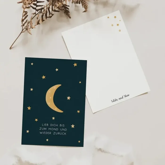 Auf der Rückseite findest du eine liebevolle Illustration und den Tilda&Theo Schriftzug. Sonst ist die Karte auf der Rückseite komplett weiß – perfekt für alle Anlässe.