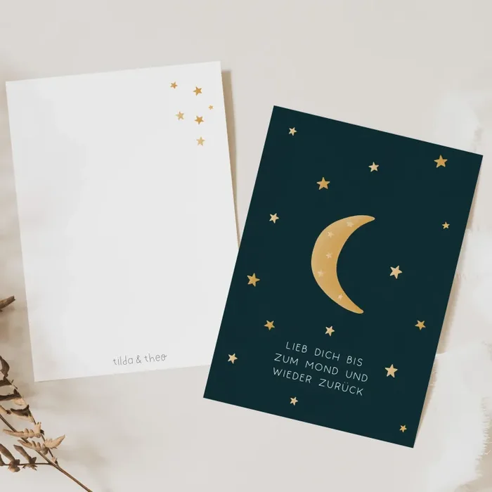 Die Karte ist im Format A6 und ist gedruckt auf hochwertiges und natürliches 300g/m² Naturpapier in creme.