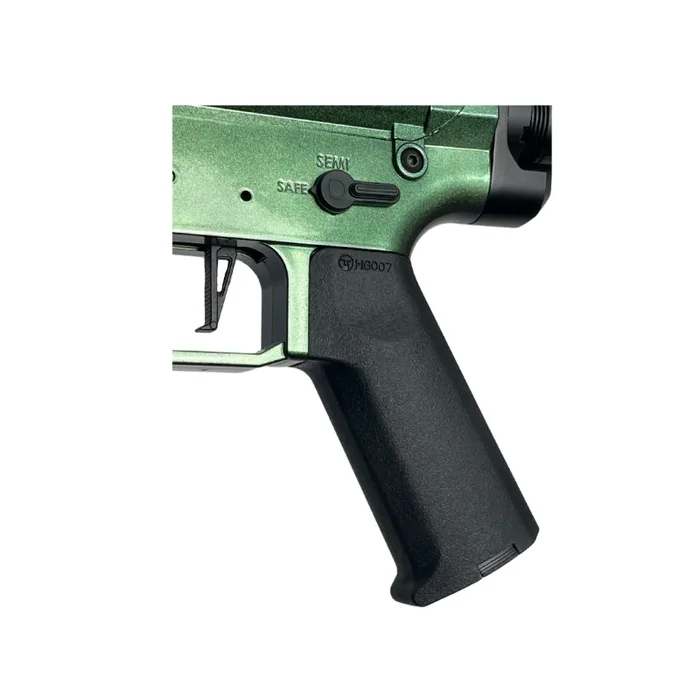 Dies ist das GBG-Spezialgewehr „MK Assassin“. Ein sehr einzigartiger Brauch, den man nicht alle Tage sieht, mit einer kompletten Farbwechsellackierung, die vom Besten der Branche „Gelball Mechanix“ durchgeführt wurde. Dieser Blaster sieht nicht nur der verrückteste aller Zeiten aus, er verfügt auch über ein komplettes, wettkampftaugliches Getriebe der Stufe 3 mit einer enormen Schussleistung von mehr als 330 Fuß pro Sekunde. Ohne Zweifel wird dieser Blaster bei Ihrem nächsten Spiel Schaden anrichten, und wie könnte man das besser tun, als mit absolutem Stil!