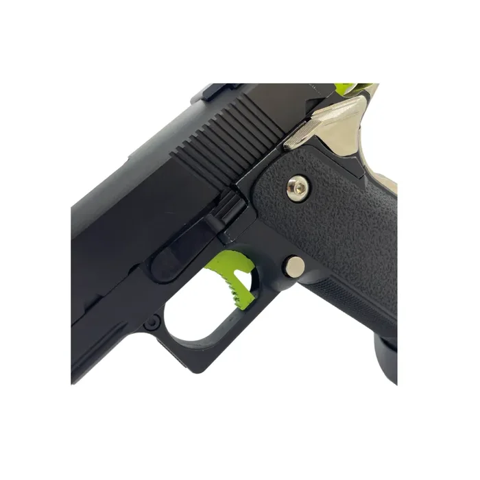 Mit dem GBG Full Hi-Capa Kit für maximale Leistung geht diese Pistole einen Schritt über die Norm hinaus. Ausgestattet mit einer sensiblen Abzugsbewegung für schnelle Schüsse und einem sehr präzisen Schießen und nicht zuletzt einer Schussleistung von mehr als 310 Fuß pro Sekunde, was absolut perfekt für Ihre Spielarenen im Speedball-/CQB-Stil ist.
