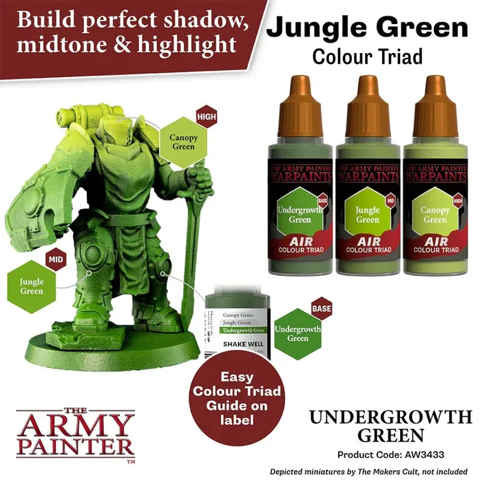 Alle Warpaints Air Farben sind bereits fertig gemischt und direkt aus der Flasche für die Airbrush einsatzbereit. Sie bestehen aus ultragefilterten, dynamischen Pigmenten. Die Warpaints Air-Reihe wurde mit einem einzigartigen und innovativen Triad-System entwickelt – jede Warpaints Acrylics-Farbe hat eine entsprechende Basis- und Highlight-Farbe. Dies macht das Hervorheben und zenithale Schattieren kinderleicht und ermöglicht ein schnelleres und einheitlicheres Bemalen von Armeen. Um die Handhabung zu erleichtern, sind die Warpaints Air-Flaschen mit zwei Stahl-Mischkugeln vorgefüllt.