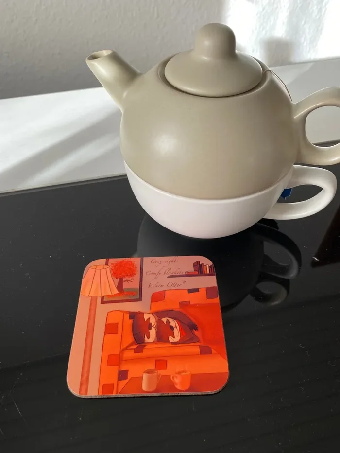 Dieser kleine Untersetzer, der 9x9cm groß ist, spiegelt genau das wieder: Ein gemütlicher Abend mit Kakao, Kaffee oder Tee auf dem Sofa, eingekuschelt in die Lieblingsdecke zusammen mit dem Lieblingsotter, während draußen die Umgebung bunt und orange wird.