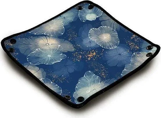 Dank diesem Würfelteller wird nicht nur das Würfeln leiser, sondern auch die Würfeldrehung wird durch die gebogenen Seiten verbessert. Hergestellt aus hochwertigem Neopren, genäht und mit rutschfester Rückseite. Hochauflösender Druck garantiert ein brillantes Erscheinungsbild & eine lange Nutzungsdauer. Mit den Druckknöpfen, lässt sich der Würfelteller flach oder aufgerollt aufbewahren. Der Würfelteller lässt sich sogar zur kleinen Tasche formen.