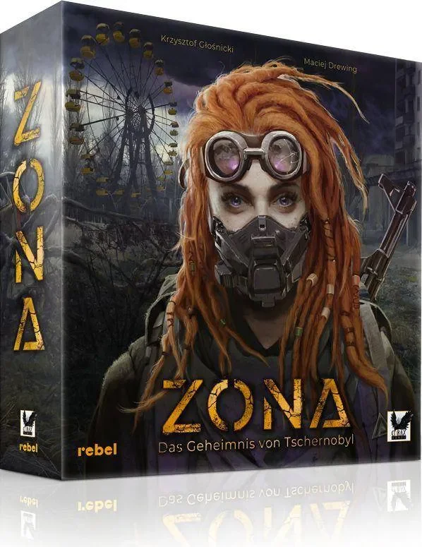 ZONA ist ein Abenteuer- und Überlebensspiel für ab en von Maciej Drewing und Krzysztof Glosnicki. Jede Runde bewegt ihr euch durch die verstrahlte Landschaft und begegnet Bedrohungen wie mutierten Bären oder seltsamen Anomalien, die Zeit und Raum verzerren. In Bunkern könnt ihr euch ausrüsten, ausruhen, eure Gegenstände reparieren und vor regelmäßigen Strahlungswellen Schutz suchen. Am Ende jeder Runde zieht jeder eine Begegnungskarte, die jeweils ein spannendes Abenteuer bereithält, komplett mit Entscheidungsmöglichkeiten, großen Risiken und manchmal auch beeindruckenden Artefakten.
