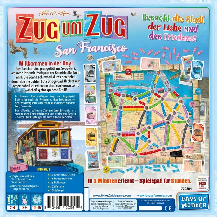 Zug um Zug: San Francisco ist eine elegant-einfache Version des beliebten Familienspiel-Klassikers Zug um Zug in kompaktem Format.